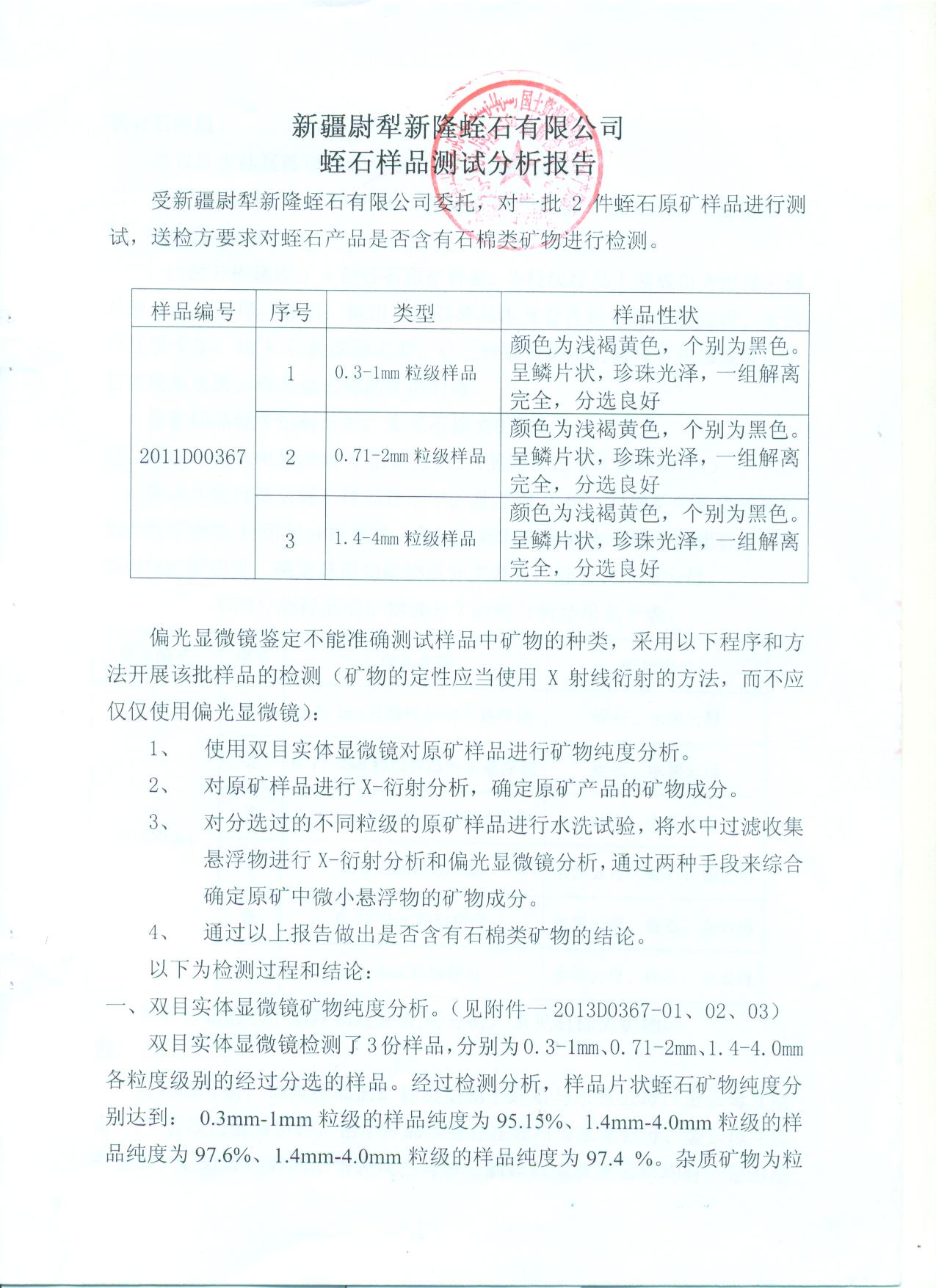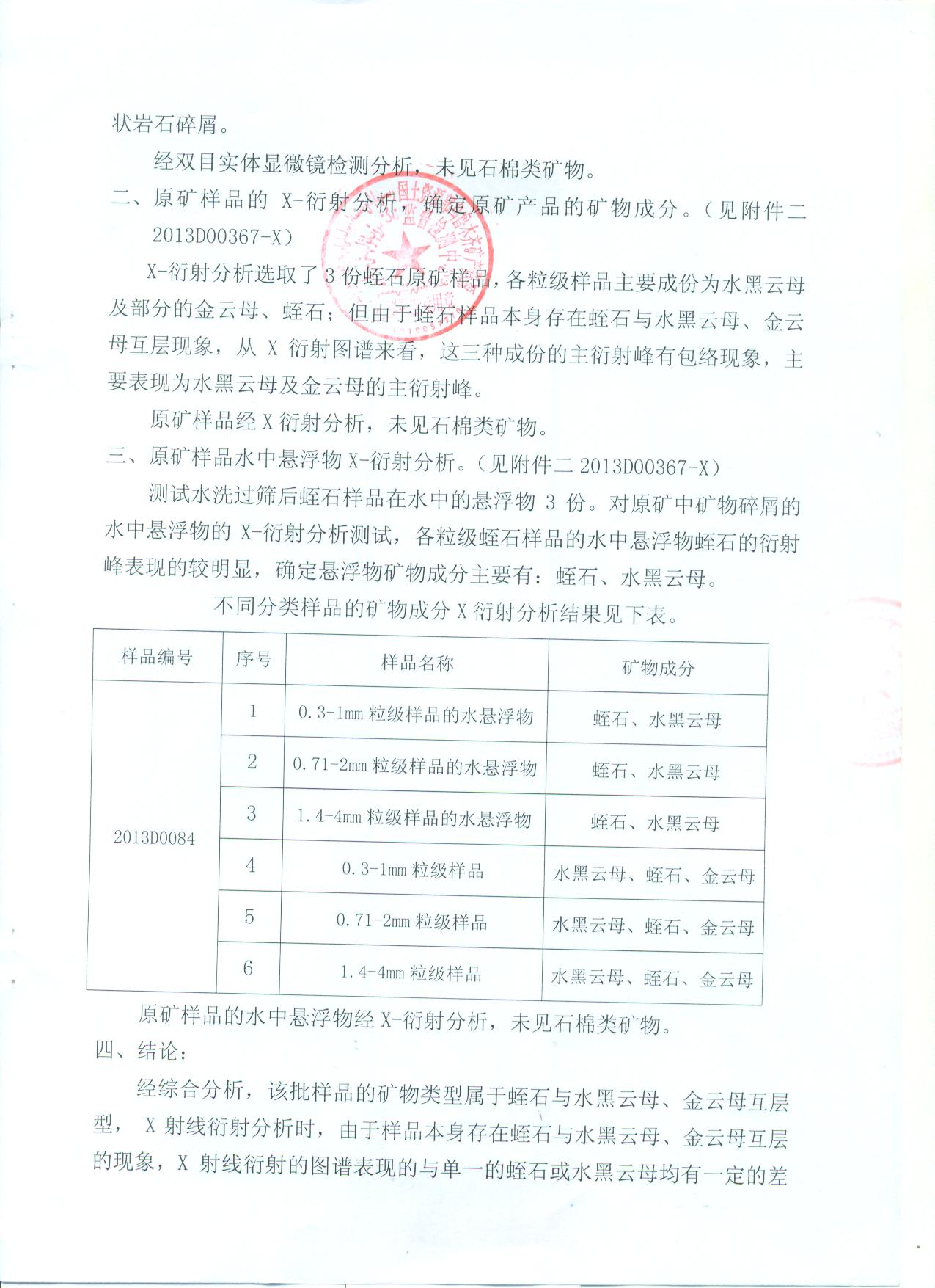 无石棉检测报告:
